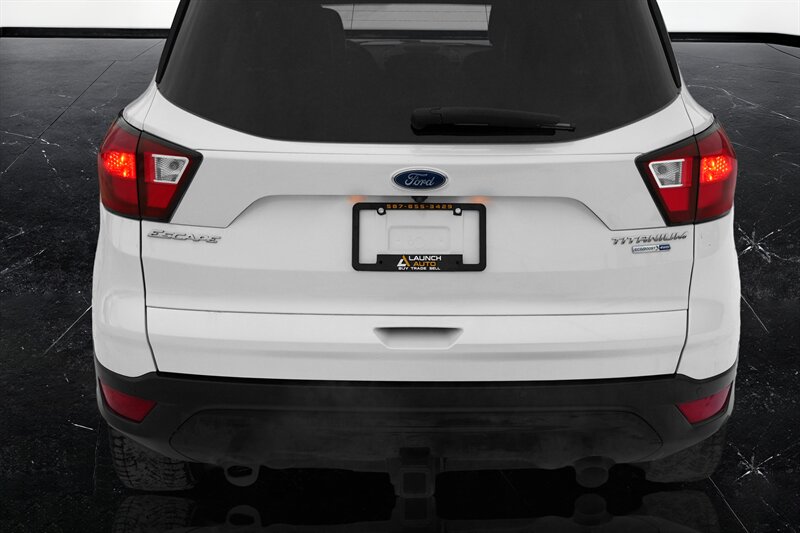 Introducing this premium and well-equipped 2019 Ford Escape Titanium. This Escape offers a refined driving experience with dual-zone automatic climate control, leather-trimmed seating, heated front seats, a heated steering wheel, push-button start, remote start, and an 8-inch SYNC touchscreen with Apple CarPlay, Android Auto, navigation, and a premium Sony sound system. Equipped with on-demand 4WD, parking sensors, a rearview camera, and a hands-free power liftgate, this SUV delivers confidence, comfort, and convenience in every season. With advanced safety features, modern technology, and a smooth, quiet ride, the Escape Titanium is ideal for daily commuting or weekend getaways. This Ford is Launch Certified and has had all required repairs and services completed.